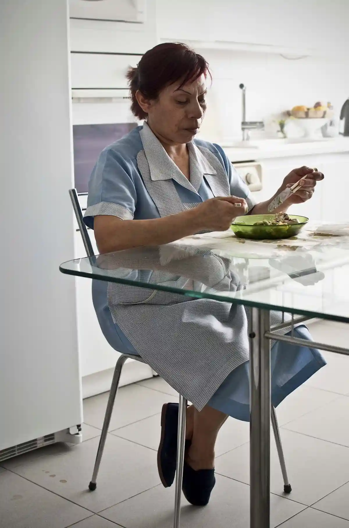 Leo es una de las miles de mujeres extranjeras que continuamente llegan a España para realizar los trabajos domésticos que las españolas ya no quieren o no pueden realizar: limpieza de la casa, cuidado de los ancianos, etc. En su caso concreto, Leo, que es de Perú, país en el que continúan viviendo sus cuatro hijos, trabaja como interna en una casa del barrio de Salamanca de Madrid. Lleva diez años en España y hace siete que no visita a su familia en el Perú.